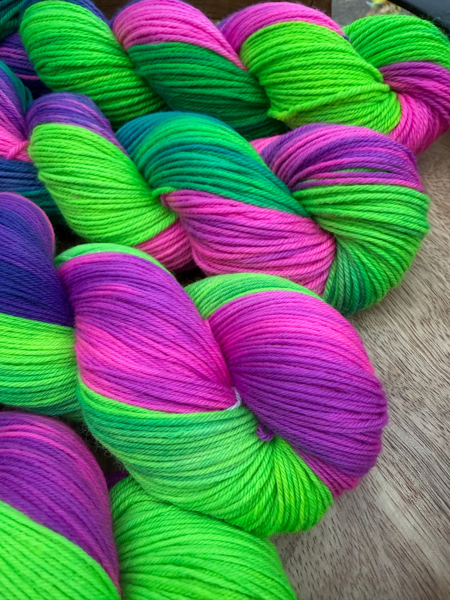 Super bright neon colours dyed on skeins inspired by the magnificent Aurora Borealis